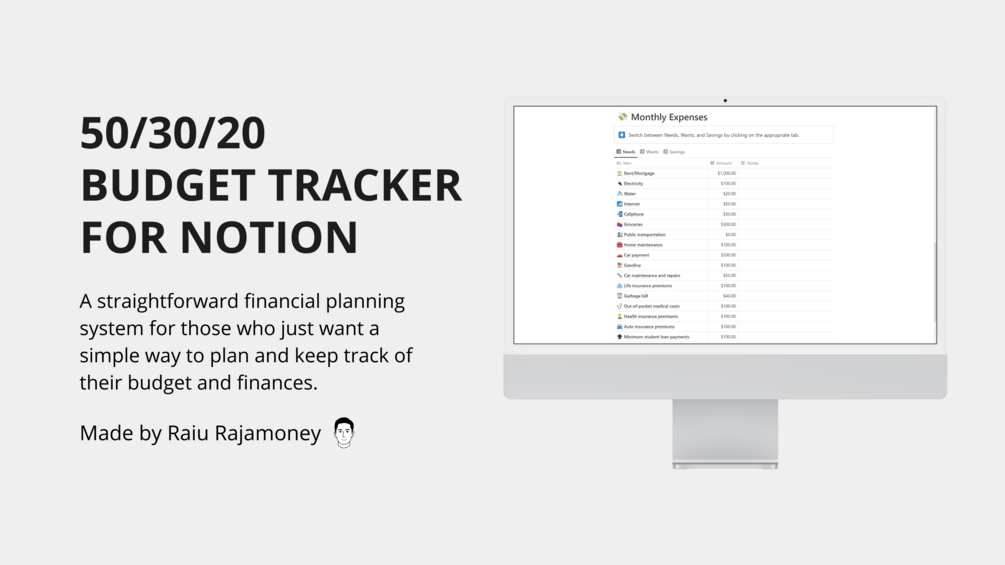 - The 50/30/20 budget tracker
