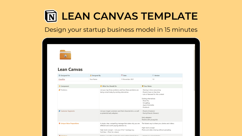 Business plans require an awful lot of time to develop, are rarely updated, and are virtually never read by others. Documentation is critical, and the Lean Canvas replaces lengthy and tedious business plans with a one-page business model that takes minutes to produce and is easy to understand.